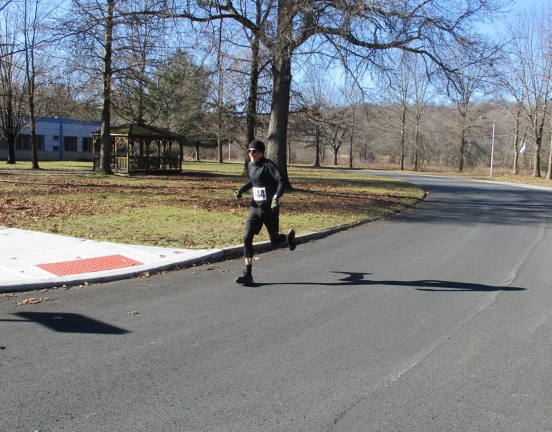 BENJAMIN STRAEBLER runs by me and will go on to win the first Winter Series race in 2023, breaking a 6 minute pace.
